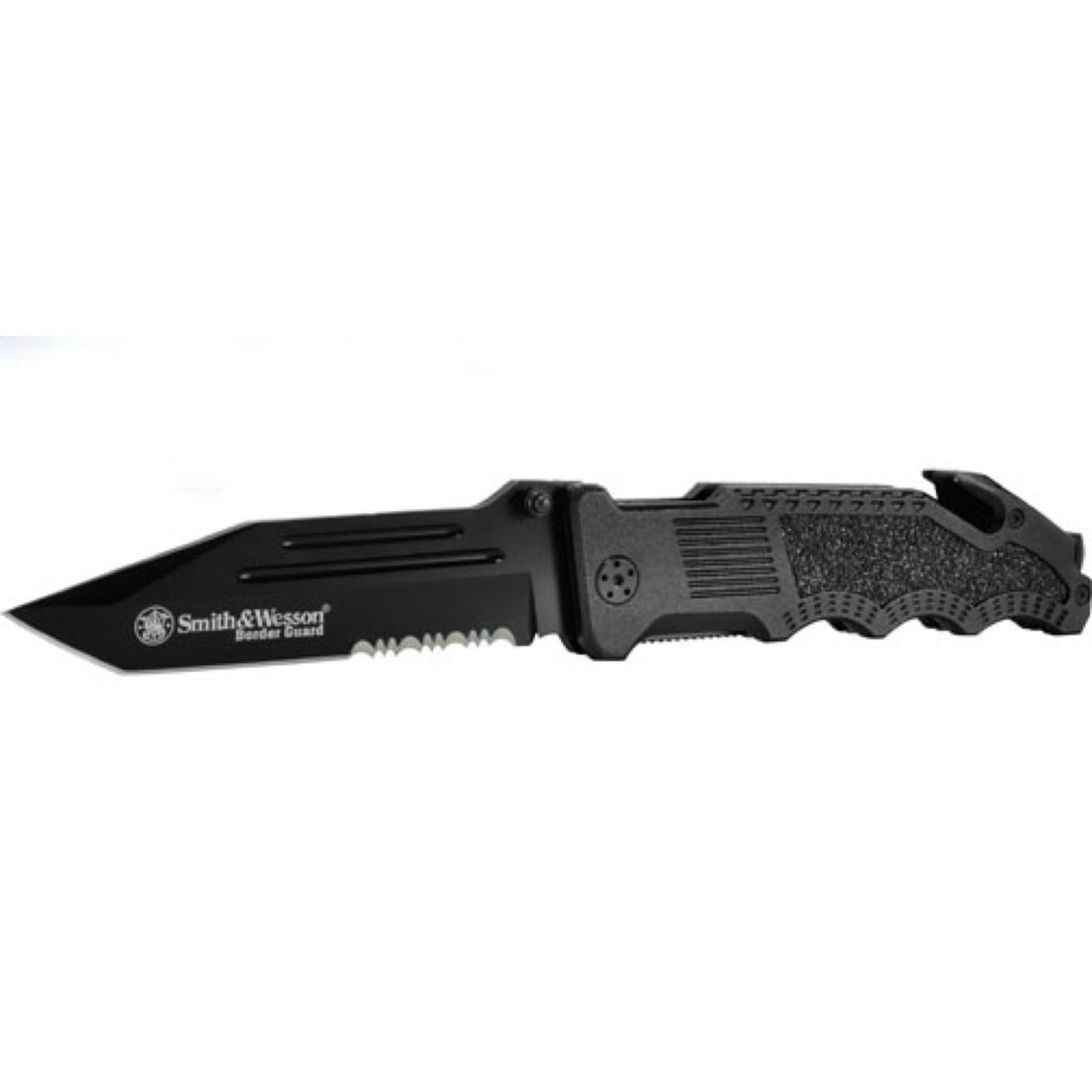 Integrated Emergency Tools: The Smith & Wesson Border Guard Rescue Knife includes an integrated seat-belt cutter...