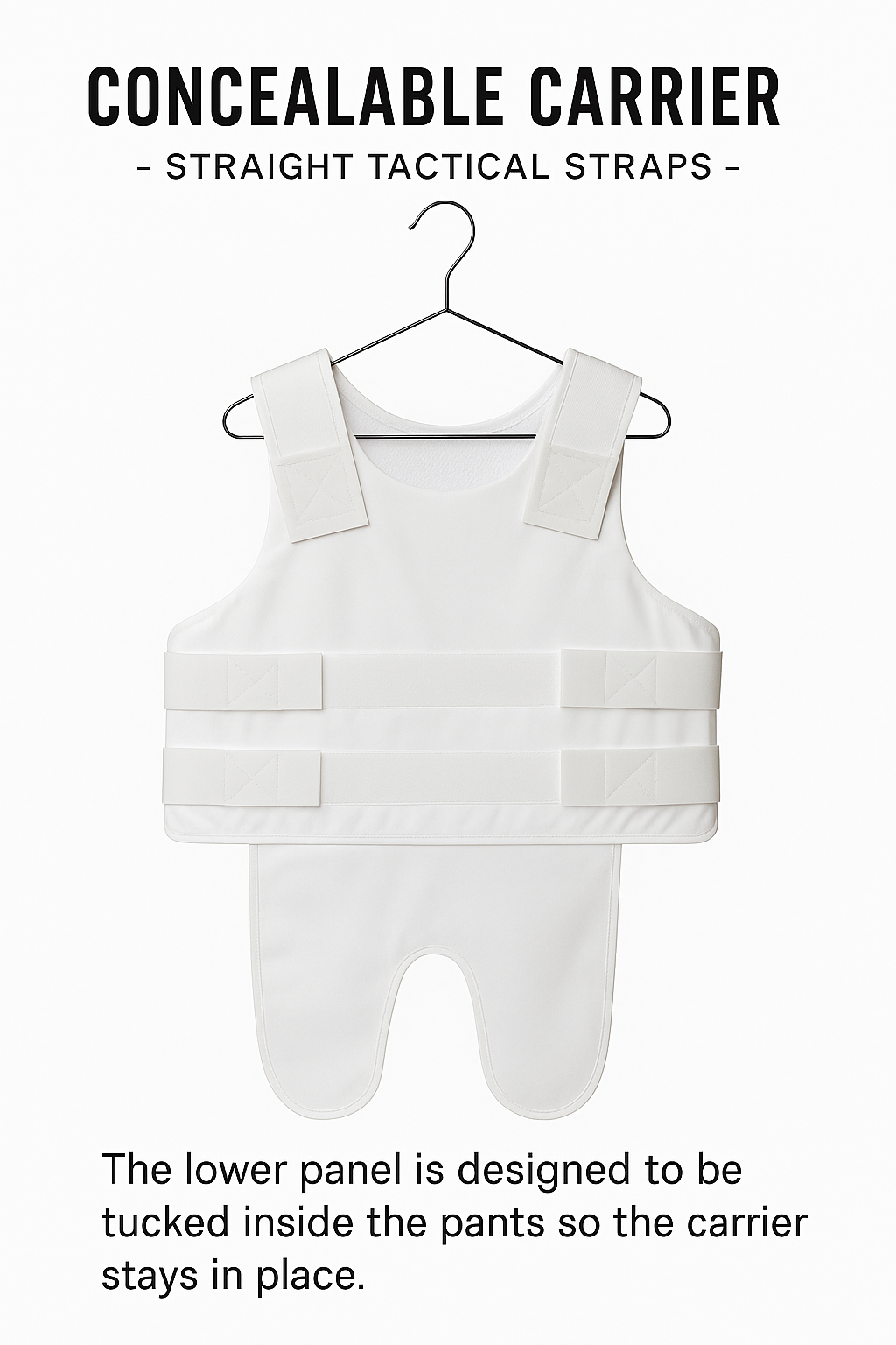 This Tactical Strap Edition offers a more structured and secure fit for officers who prefer firmer support. The straight dual-Velcro straps provide extra stability, making it ideal for active movement. The extended lower panel is designed to tuck into the pants, preventing the carrier from riding up and ensuring a clean, concealed profile.
