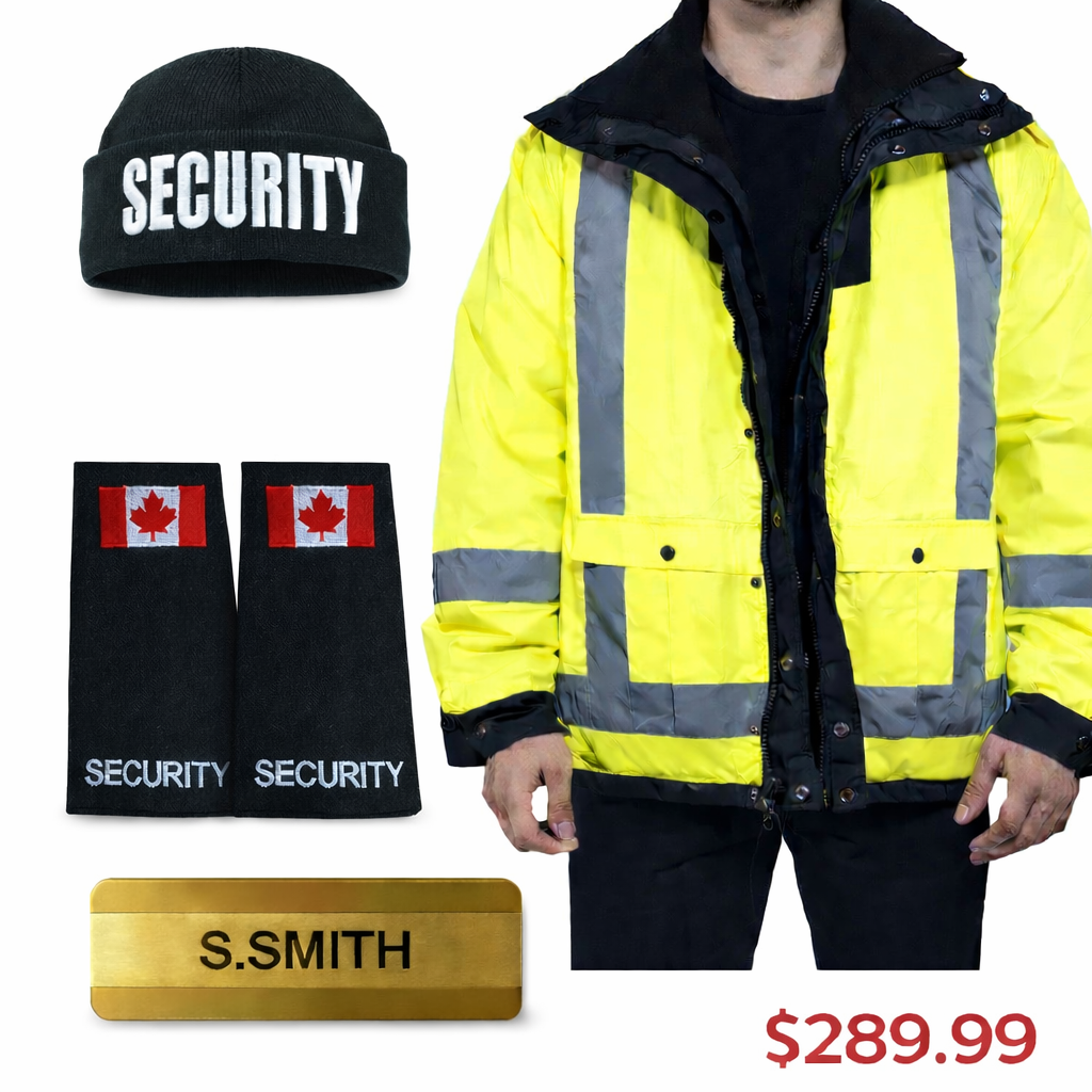 Perfect for security companies, event staff, and patrol officers who need visibility, warmth, and clear identification in one complete setup.