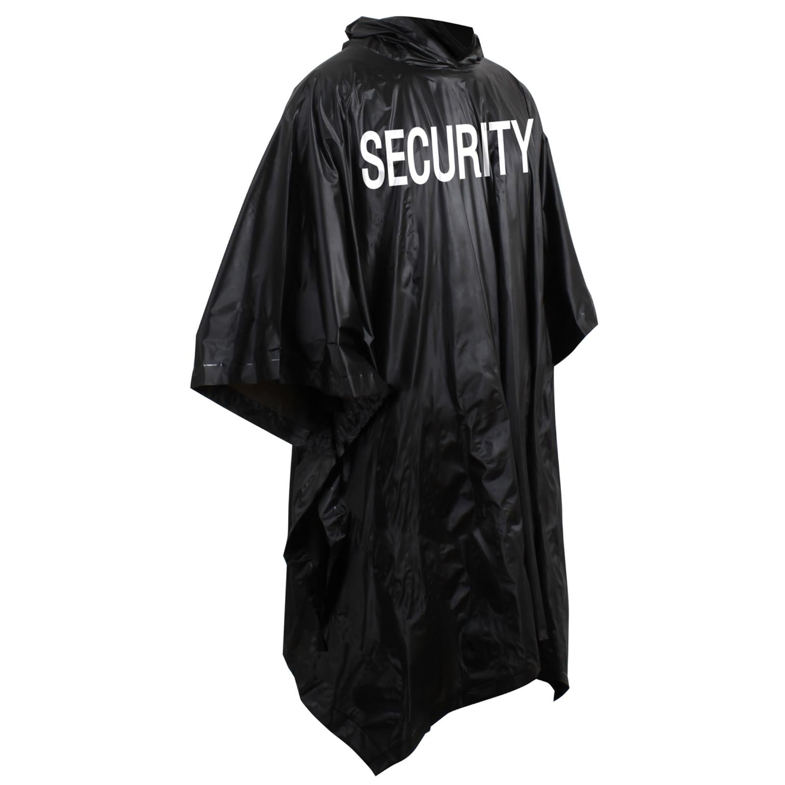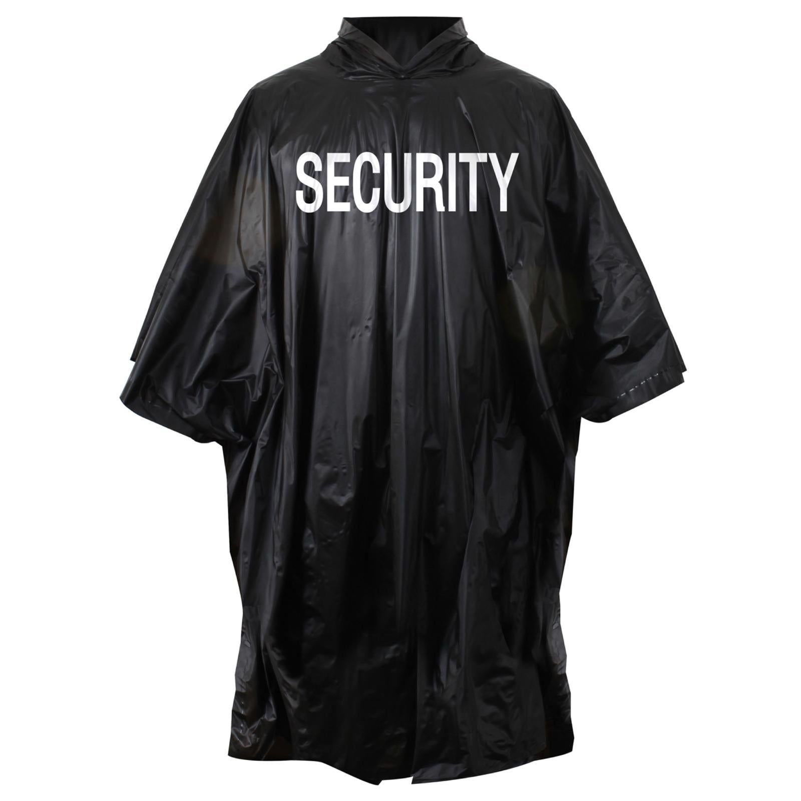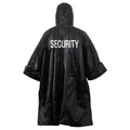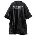 Security Poncho is heat sealed and features a black vinyl with white security printed on both front and back.