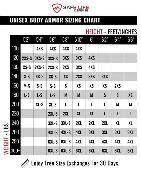 Safe Life Defense guarantees the proper fit of your body armor. If you feel your vest does not fit properly, we will exchange your vest. Exchanges must be within 30 days of delivery and in original condition.